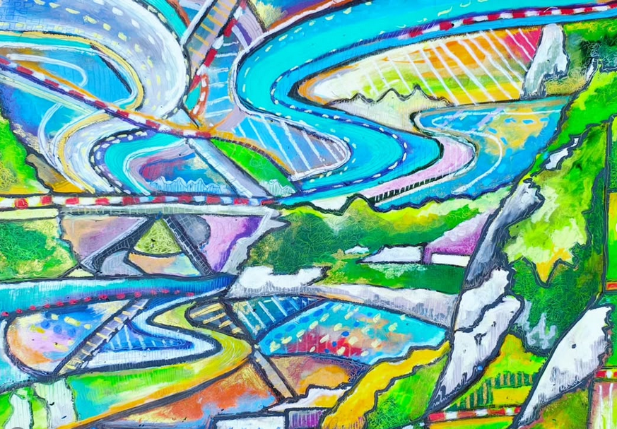 Work completed as a Wildcard Artist for Sky Arts Landscape Artist of the Year. A cubist and imaginative re-interpretation of Dover Ferry Port.